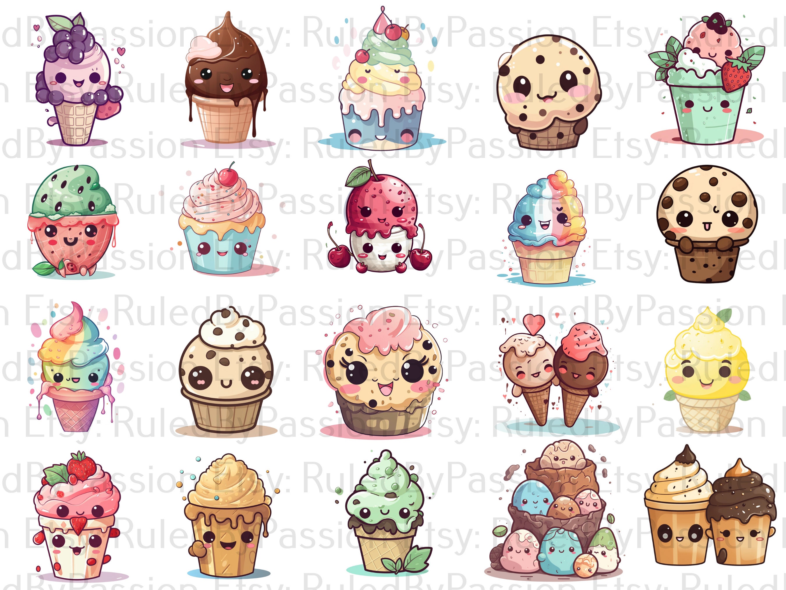 Cute Kawaii Ice Cream Clip Art Pack 3 Stickers Planner Etsy